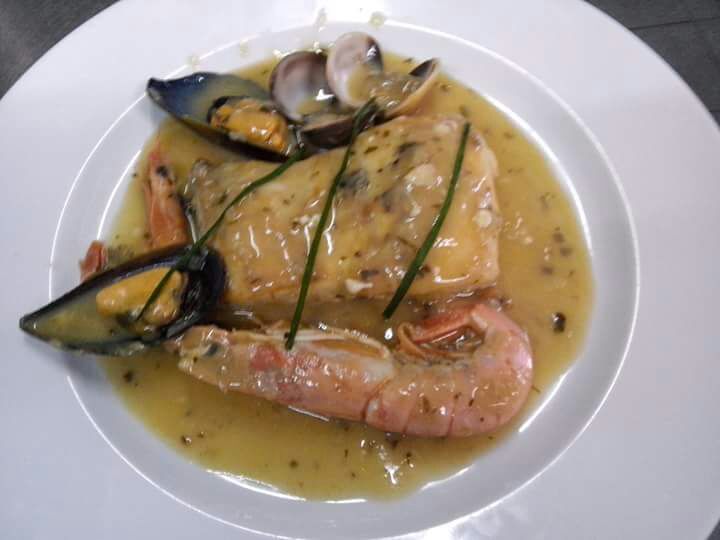 El menú incluye: 4 primeros, 4 segundos, postres variados, vino, casera y agua