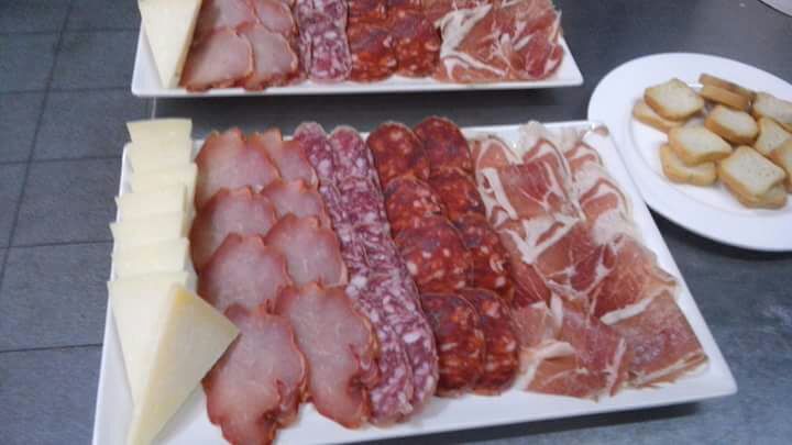 El menú incluye: 4 primeros, 4 segundos, postres variados, vino, casera y agua